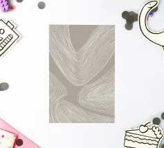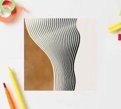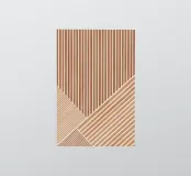 Striking geometric design featuring white parallel lines arranged in various orientations, creating triangular and trapezoidal shapes against a brown background, resembling a wooden texture.