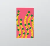 A simple and playful pattern of green, pea-like dots is scattered across a vibrant pink background, creating a fun, cheerful, and modern design.