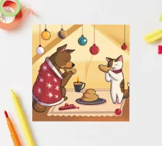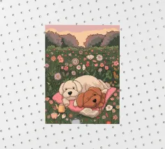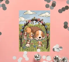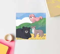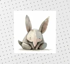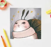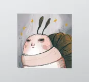 This artwork depicts a grumpy-looking cloud with a thought bubble containing a bird and a bear. The humorous and imaginative scene is set against a soft blue background.