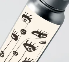 Stickers made of PP film/PET film with protective lamination and different surface structures.