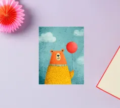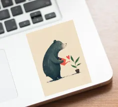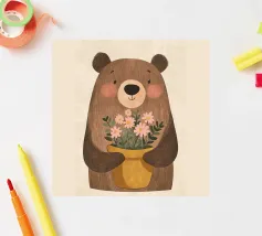 In a whimsical garden, a bear holds a juicy watermelon surrounded by fruits and a lush tree. The lively composition celebrates abundance and nature�s sweetness.