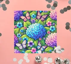 A charming and vibrant cartoon pattern featuring delightful, repeating hydrangeas. Perfect for adding a touch of colorful elegance to any project or design.