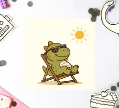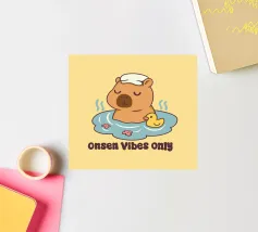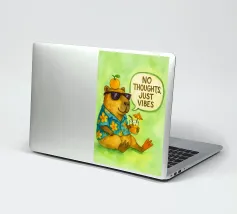 A cheerful capybara wearing sunglasses lounges on a bench, enjoying watermelon with a tropical vibe. Text above reads "I'M NOT LAZY" and below, "I'M JUST ON CAPYBARA TIME."