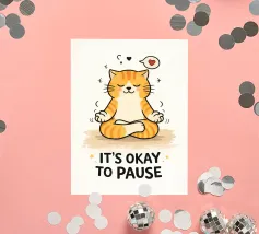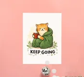 This hand-drawn illustration features a calm, determined cat reminding you to keep moving forward. With a warm color palette and gentle lines, this artwork celebrates perseverance, patience, and inner strength. A comforting piece for workspaces, studios, or any room that needs quiet motivation.