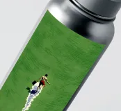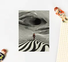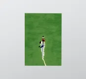A single figure walks barefoot across a huge green surface - but its track is made of glistening water. The narrow path of water runs through the picture like a crack in everyday life, allowing reality and surrealism to flow into one another. With a determined stride, the figure embodies freedom, unusualness and the art of finding one's own way.