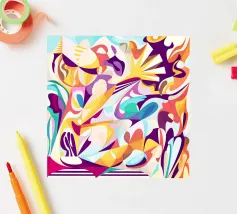 Bold and dynamic geometric design, filled with vibrant, eye-catching color colorful birght shapes, multicolored pattern, blue orange yellow purple bright colors Adds instant energy to any space or outfit with its modern, playful aesthetic Ideal for fans of abstract art, color theory, and design-forward décor Versatile pattern that shines on everything from prints to pillows to phone cases A great gift for creatives, designers, or anyone who loves bold, expressive style