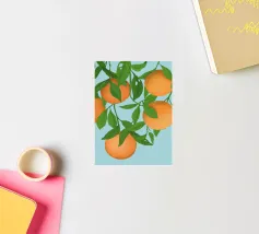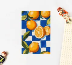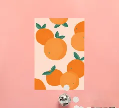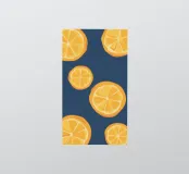 A graphic, pop art style pattern of orange slices against a dark blue background. The composition is modern, vibrant, and a fresh, zesty, and stylish design.