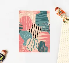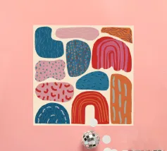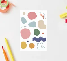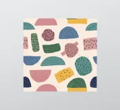 A gentle and pleasing pattern of abstract, organic shapes in pastel colors like pink, blue, and yellow, creating a soft, modern, and cheerful design.