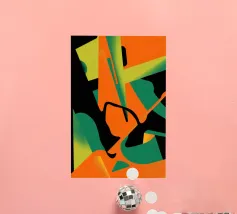 An abstract pattern combines patchwork-like color blocks with energetic scribbles and stripes, creating a dynamic, playful, and artistic design.