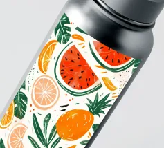 Stickers made of PP film/PET film with protective lamination and different surface structures.