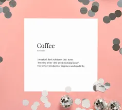 Embrace your coffee addiction with our witty "Procaffeinating" typography art print. This clever design presents a humorous definition in crisp white text on a sleek black background, mimicking a dictionary entry. Perfect for coffee lovers and procrastinators alike, it adds a touch of relatable humor to any kitchen, office, or café. The stark contrast and formal typography style create a visually striking piece that's both amusing and stylish. Available on various products, this versatile design makes an ideal gift for anyone who can't function without their daily brew.
