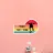 An energetic skateboard motif with vintage flair: the silhouette of a skater in the air, captured in front of a semi-circular sunset of horizontal stripes in warm retro colours - from red to orange to green. To the left is space for your personalised text, e.g. "Skating since 1998", in striking, slightly distressed typography.