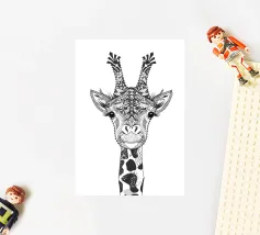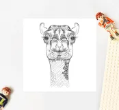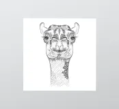 This smiling camel with ornate patterns embodies serenity and exoticism - a decorative highlight from the world of oriental-inspired illustrations.Detailed black and white drawing of a camel Symmetrical ornaments and floral patterns Combines humour with cultural aesthetics Ideal for posters, textiles or notebook covers Expressive, almost human facial expressions
