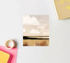 An abstract landscape of soft clouds and gentle light with a calm, balanced atmosphere.