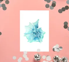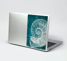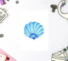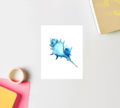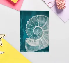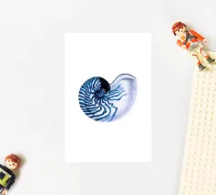 A blue nautilus shell in soft blue tones against a white background radiates calm and aesthetics. Its spiral shape and simple beauty invite the viewer to explore the secrets of the underwater world. A timeless work of art in a maritime style.