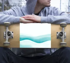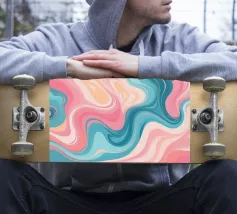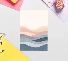 Gentle curves of blue and peach create a soothing abstract pattern that evokes a sense of peace and relaxation. This design is perfect for modern decor.