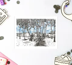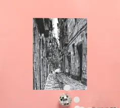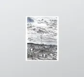 The clouds spreading over the city of Barcelona are dynamic. Looking out from the rooftop of my apartment, I can see the sparkling sea beyond the city to the right. A different world unfolds before me that cannot be seen from the street. This is a drawing I did live.