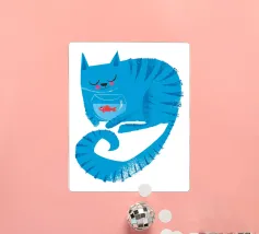 Hand-drawn illustration of a running cat in ink and watercolours. The motif is digitised with a transparent background so that you can choose your own desired colour as the background, depending on the product. Existing text can be customised or new text can be added. Have fun designing!