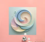 Intricate spiral shapes in soft pastels blend harmoniously, giving the illusion of flowing motion against a pale backdrop. The design captivates with its gentle curves.