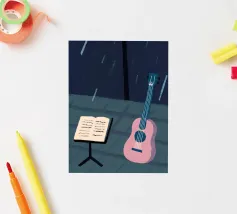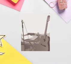 A unique and captivating artistic style. Two guitars depicted in beautiful detail,