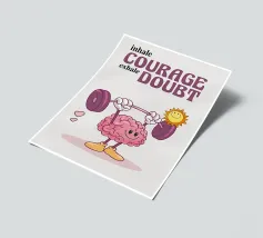 A brain is depicted being filled with coffee from a pot, accompanied by a loading bar below. The illustration humorously suggests the mind's need for coffee to function properly.