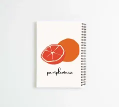 Drawing of a grapefruit with French text: Pamplemousse. Generated with AI (Canva), among other things.