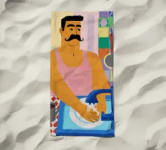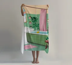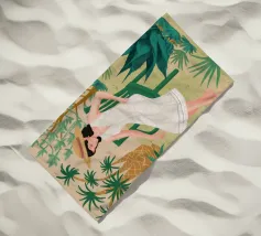 Terry velour with a mix of 55% microfiber and 45% cotton.