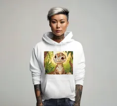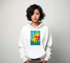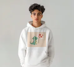 This sweet little dinosaur is all about spreading love, as it joyfully clutches a bright pink heart while floating on a bed of colorful clouds. With its big, shining eyes and playful expression, this dino brings an irresistible charm to any setting. The vibrant hues of orange, green, and pink make it a delightful visual treat for dino-lovers of all ages. Whether it’s a cute addition to your decor or a fun gift, this lovable dinosaur is ready to share smiles and warmth!