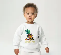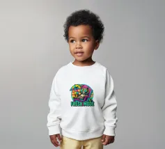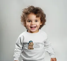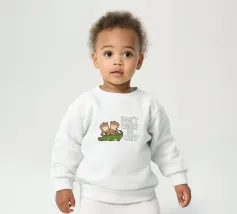 Our baby sweatshirts are made from 85% organic cotton and 15% recycled polyester.