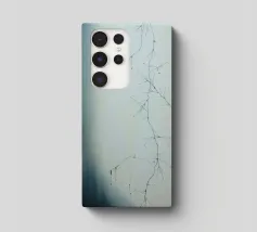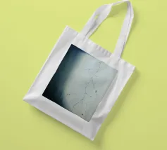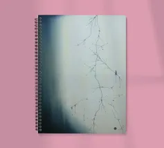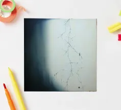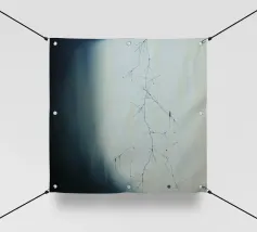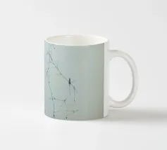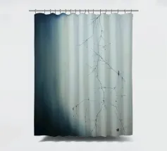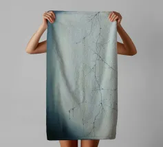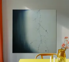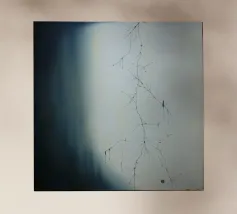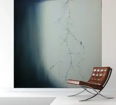 Intricate branching patterns fill this abstract artwork, set against a gradient blue to white background. The delicate lines create a serene and minimalist effect, inviting contemplation.