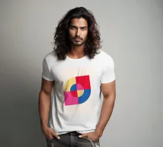 Inject vibrant energy into your space with this captivating abstract geometric art print. The design features a dynamic composition of bold color blocks and circles, creating a playful yet sophisticated visual. A large quadrant shape, split into yellow, red, blue, and hot pink, frames a central circular motif that mirrors these hues in its own divisions. This piece exudes a cheerful, contemporary vibe, perfect for adding a modern pop to any room. Produced at an impressive 7000x5000 pixels resolution and 300 dpi, this high-quality digital art ensures every crisp line and vivid color is rendered