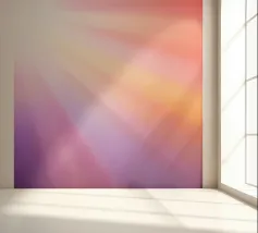 Sunlight filters through the atmosphere, casting vibrant rays in shades of pink, purple, and orange, bringing a serene ambiance to the early morning landscape.