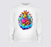 Bring home a touch of cuteness and warmth with this adorable design! Featuring a charming giraffe lovingly hugging a heart-shaped pillow on a fluffy cloud, all surrounded by vibrant rainbow hues. This playful and love-filled design is perfect for adding a cheerful vibe to any room, making it a delightful companion for cozy moments or as an eye-catching decorative piece. Perfect for: Adding a splash of fun to a child's room or as a unique gift for someone special.