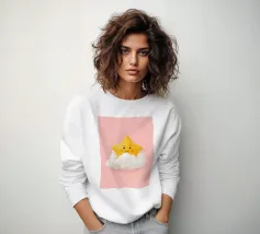 A cheerful star character with a smiling face and blush cheeks. Its soft yellow hues create a friendly and inviting appearance, perfect for children's themes or playful designs.