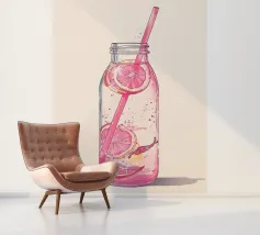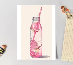 Dive into summer fun with this whimsical "Pink Lemonade Diver" art print! This charming illustration features a glass bottle of sparkling pink lemonade, brimming with grapefruit slices and a playful tiny diver, all with a vibrant pink straw. It's a delightful and refreshing piece perfect for adding a touch of humor and summery bliss to your kitchen, dining area, or a vibrant living space. Crafted as high-resolution digital art at 7000x5000 pixels and 300 dpi, this poster ensures exceptional clarity and rich, vivid colors, making it a truly captivating and unique addition to your decor.