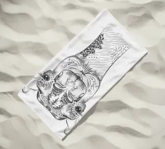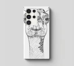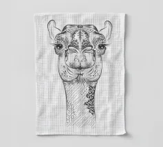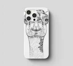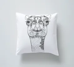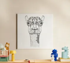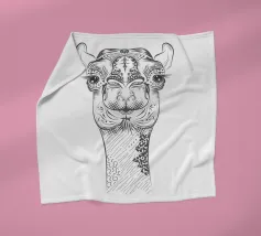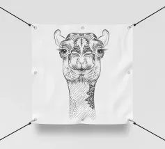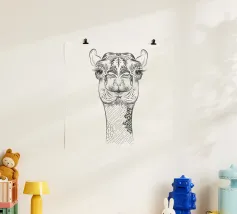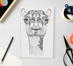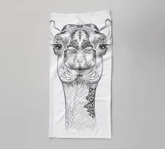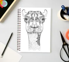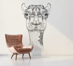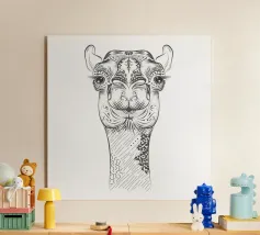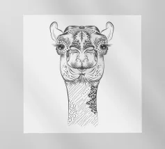 This smiling camel with ornate patterns embodies serenity and exoticism - a decorative highlight from the world of oriental-inspired illustrations.Detailed black and white drawing of a camel Symmetrical ornaments and floral patterns Combines humour with cultural aesthetics Ideal for posters, textiles or notebook covers Expressive, almost human facial expressions