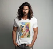Artistic depiction of a cat in abstract style with colourful surfaces - playful, modern and full of expressiveness. Cat motif in geometric colour block technique Harmonious, warm and vibrant colours Contemporary interpretation of an animal classic Ideal for lovers of modern art styles Expressive, creative and versatile
