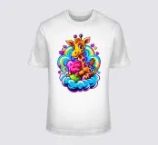 Bring home a touch of cuteness and warmth with this adorable design! Featuring a charming giraffe lovingly hugging a heart-shaped pillow on a fluffy cloud, all surrounded by vibrant rainbow hues. This playful and love-filled design is perfect for adding a cheerful vibe to any room, making it a delightful companion for cozy moments or as an eye-catching decorative piece. Perfect for: Adding a splash of fun to a child's room or as a unique gift for someone special.