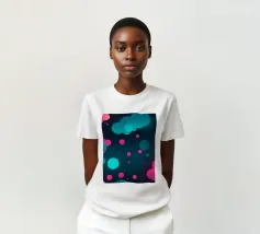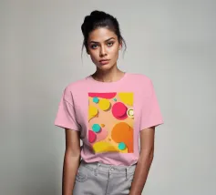 This artwork showcases an array of vibrant, overlapping circular forms in various colors, creating a lively and engaging abstract design that captivates the eye.