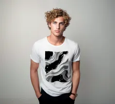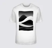 Curved black and white waves undulate across the canvas, forming an abstract landscape. The smooth transitions create a sense of rhythm and depth, inviting contemplation and creativity.