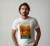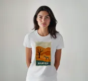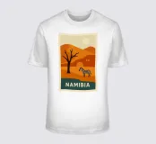 A poster in fiery tones for an untamed land. Namibia, its orange dunes, free-roaming zebras and petrified trees come to life in a striking, stylised composition. Ideal for a powerful decor, combining extreme nature and graphic beauty. Every curve tells the story of Africa.