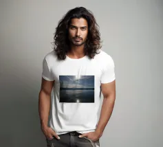Imagine a golden beach with gentle waves lapping gently on the shore while the radiant sun warms your skin. In this dreamlike paradise, you can escape from everyday life and unwind. The scent of salty sea air and the calming sound of the waves invite you to relax completely. ✨ Available as a picture, fashion piece, cushion and more.