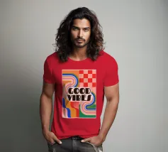 Fill your space with positivity and style with this "Good Vibes Only" digital art print. This vibrant graphic design features the uplifting message in layered orange text, set against a dynamic warped yellow and white checkered background, and surrounded by playful illustrations of smiling flowers, hearts, emojis, and other groovy symbols. It embodies a retro-inspired aesthetic designed to spread happiness and good vibes. This high-quality digital reproduction boasts a resolution of 7000x5000 pixels at 300 dpi, ensuring outstanding clarity, sharp lines, and brilliant colors. An ideal print for