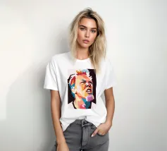 WPAP (Wedha’s Pop Art Portrait) is a geometric, vibrant, and colorful art style that emphasizes sharp angles and bold color contrasts. A WPAP-style portrait of Sinéad O’Connor would feature her striking facial structure with sharp, angular shapes in bright, contrasting colors. Her signature shaved head and intense gaze would be accentuated through bold geometric patterns. The artwork would capture her emotional depth and rebellious spirit, reflecting her legacy as a fearless musician and activist.