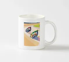 Get an illustration of a car drifting on the track with a dynamic geometric style.