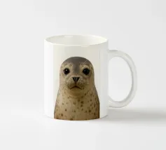 A spotted seal glides peacefully through gentle waves, surrounded by coral that glows in warm hues of gold and blush. This artwork reveals the tender side of the ocean — calm, radiant and filled with beautiful aesthetics beneath the sunlight-kissed surface. Imagined by Trinkets NL Design Studio, visualized with the help of AI.