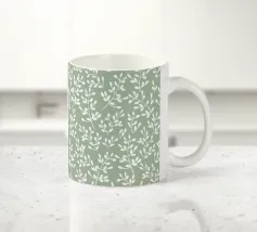 Bohemian simple pattern of abstract leaf in sage green and white.