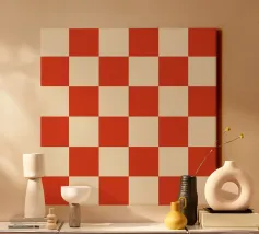 This striking design pairs a bold checkered motif with a warm cinnabar tone—a rich reddish-orange that radiates energy and depth. The geometric layout brings balance and rhythm, while the earthy hue adds a touch of warmth and individuality. Both lively and grounded, this pattern offers a timeless appeal that fits effortlessly into eclectic, bohemian, or modern aesthetics.