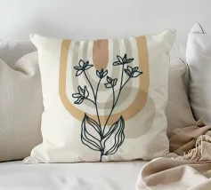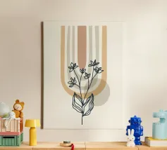 A delicate floral motif combined with curved geometric lines in soft earthy colours. This design exudes natural elegance and boho charm and is perfect for anyone who wants to add style to their home. Ideal for products such as wall murals, cushions, mugs or mobile phone cases - a timeless accent for any room. Get this unique combination of nature and geometry to add an artistic touch to your everyday life.
