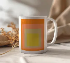 A series of concentric rectangles in varying shades of orange and red create a soothing gradient effect. The soft transitions between colors give the image a sense of harmony and depth.